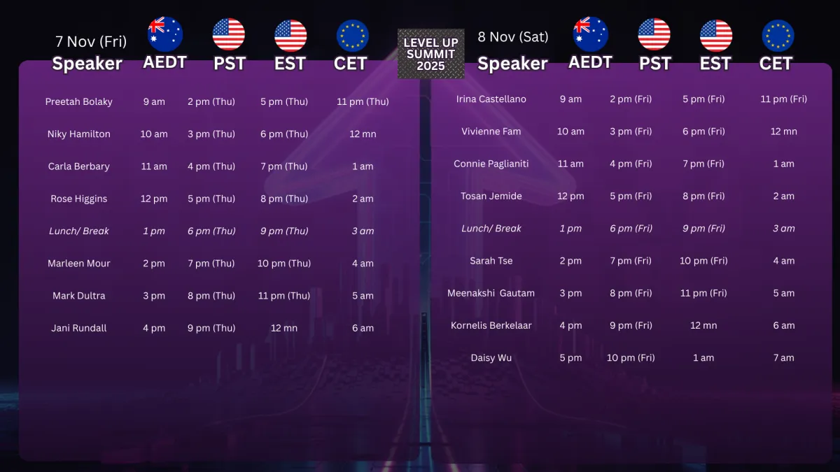The Level Up Summit 2025 is a global online event bringing together the world’s most inspiring thought leaders, entrepreneurs, coaches, and change makers to help you create powerful breakthroughs in every area of life.